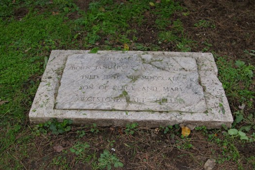 Percy Bysshe and Mary Shelley’s beloved son William died at three years of age in Rome, in 1819, and was buried near the Pyramid. There is a grave marker, though apparently it is not quite in the right location.