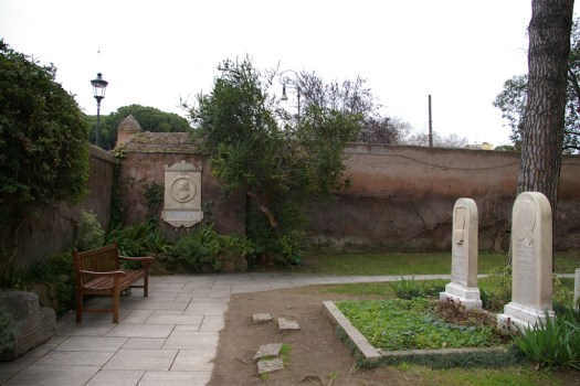A bench is placed before Keats’ and Severn’s graves, where you can sit and contemplate them quite peacefully. The cats of the cemetery may come and join you for a while. I cannot imagine a lovelier place for Keats to rest.