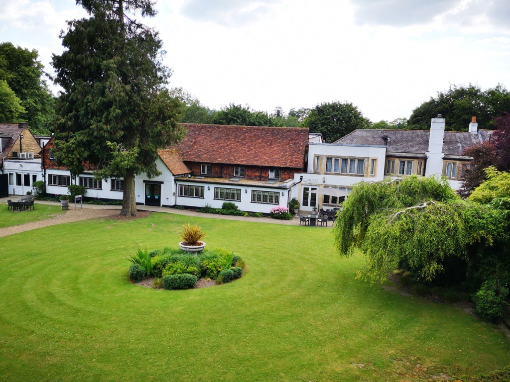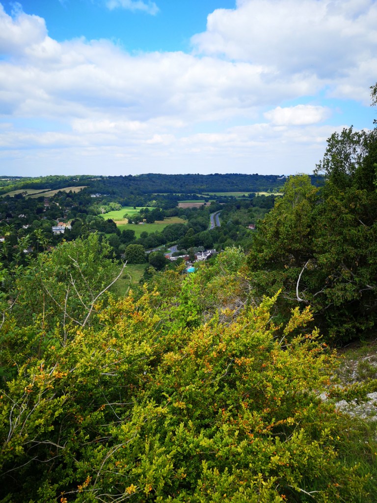 The reverse angle shot: From Box Hill, looking down on the hotel. You can spy the bright blue of the swimming pool in the centre of the photo.