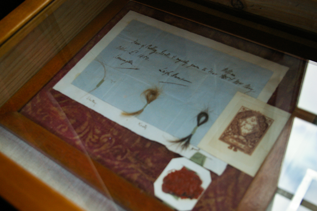 Locks of Shelley’s (left) and Keats’ (middle) hair, February 2013.